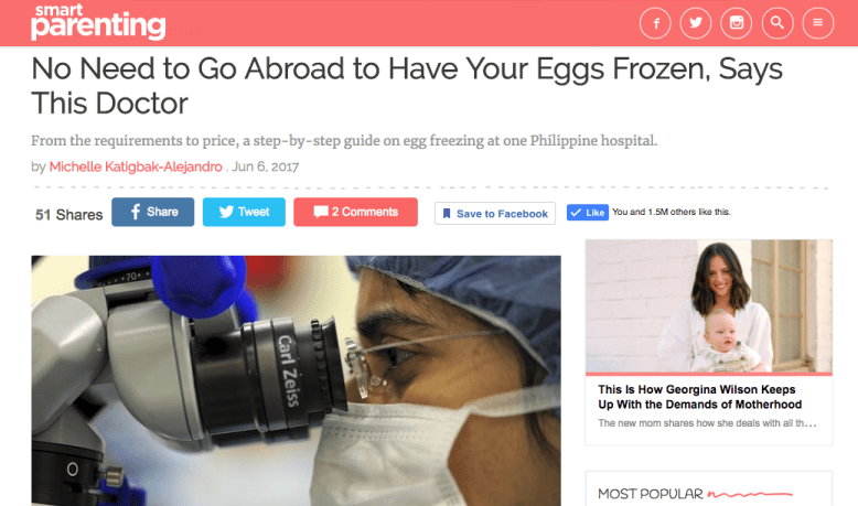 Egg Freezing and Storage in the Philippines The basics of egg freezing and storage in the Philippines. Appeared on SmartParenting.com. https://www.smartparenting.com.ph/pregnancy/getting-pregnant/everything-you-need-to-know-egg-freezing-ph-a1510-20170606 Share this: Click to share on X (Opens in new window) X Click to share on Facebook (Opens in new window) Facebook Like Loading...