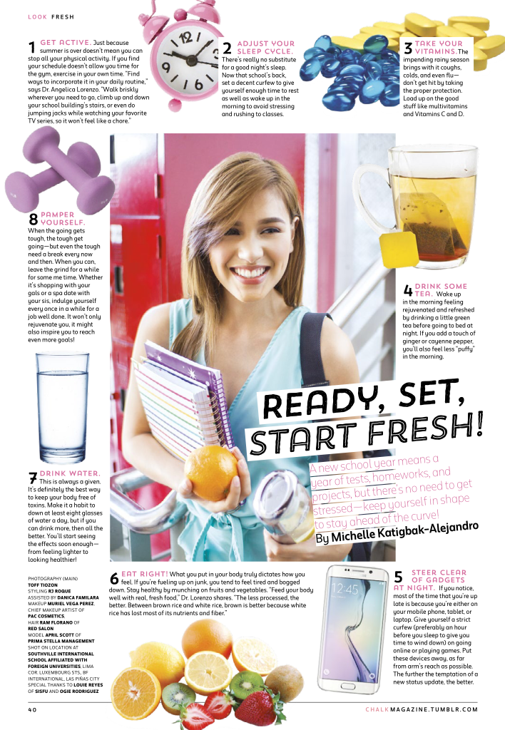 Ready, Set, Start Fresh Healthy habits for the start of the school year. Appeared in Chalk Magazine 2015 Share this: Click to share on X (Opens in new window) X Click to share on Facebook (Opens in new window) Facebook Like Loading...